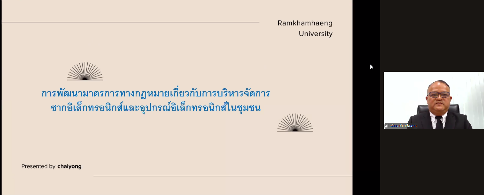 หัวข้อดุษฎีนิพนธ์ เรื่อง "การพัฒนามาตรการทางกฎหมายเกี่ยวกับการบริหารจัดการซากอิเล็กทรอนิกส์และอุปกรณ์อิเล็กทรอนิกส์ในชุมชน"