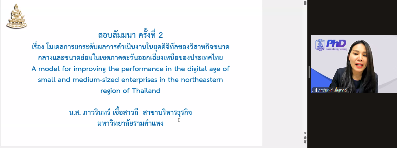 หัวข้อดุษฎีนิพนธ์ เรื่อง "โมเดลการยกระดับผลการดำเนินงานในยุคดิจิทัลของวิสาหกิจขนาดกลางและขนาดย่อมในเขตภาคตะวันออกเฉียงเหนือของประเทศไทย"