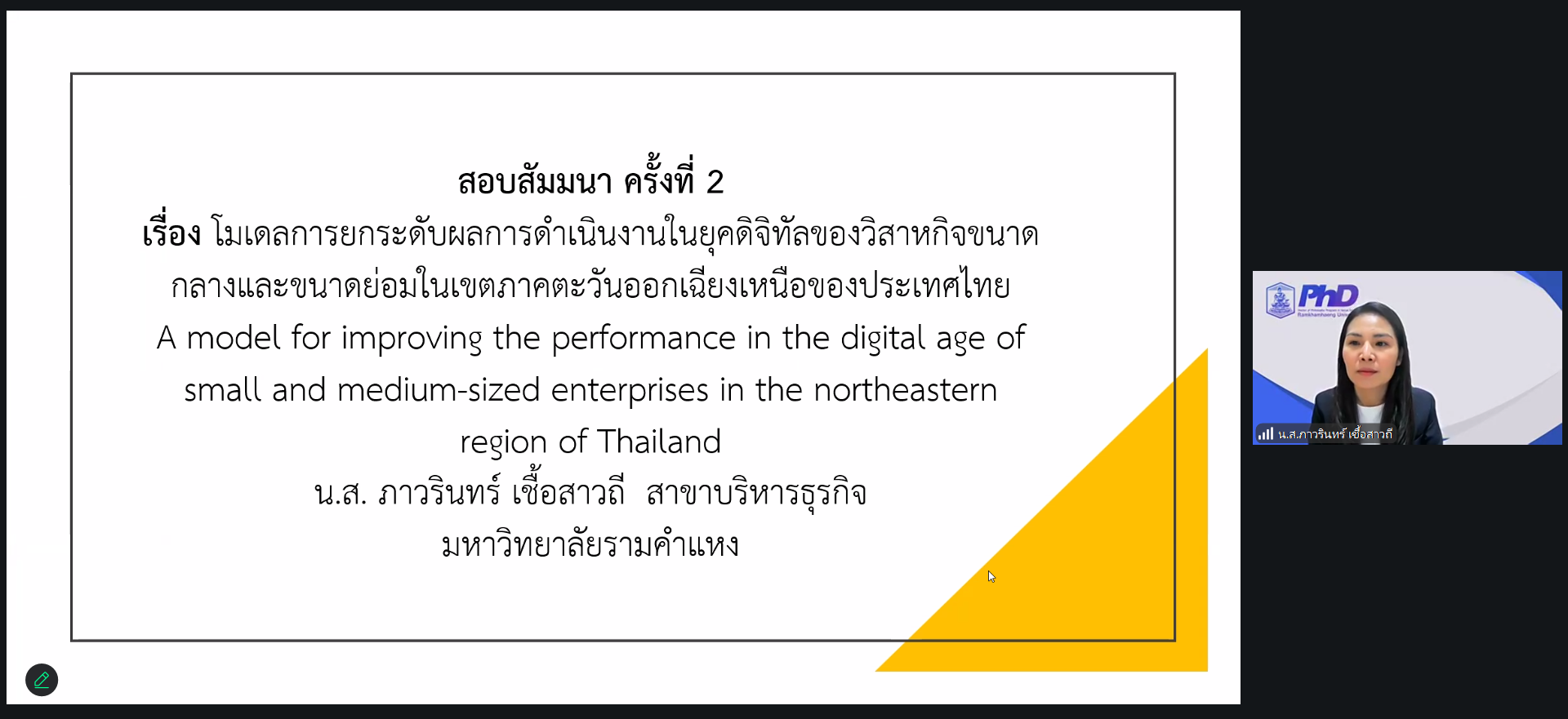 หัวข้อดุษฎีนิพนธ์: “โมเดลการยกระดับผลการดำเนินงานในยุคดิจิทัลของวิสาหกิจขนาดกลางและขนาดย่อมในเขตภาคตะวันออกเฉียงเหนือของประเทศไทย”