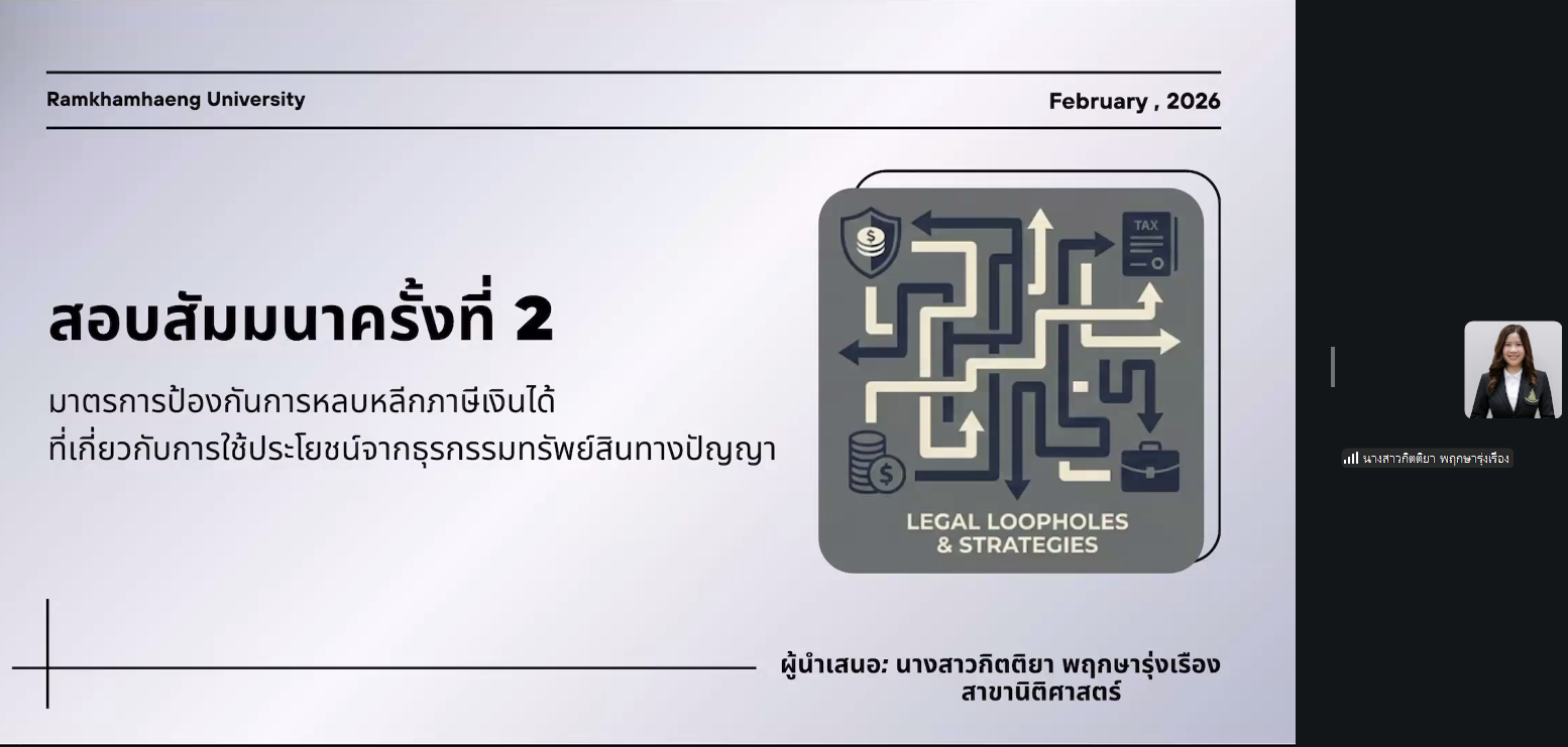 หัวข้อดุษฎีนิพนธ์: “มาตรการป้องกันการหลบหลีกภาษีเงินได้ที่เกี่ยวกับการใช้ประโยชน์จากธุรกรรมทรัพย์สินทางปัญญา”