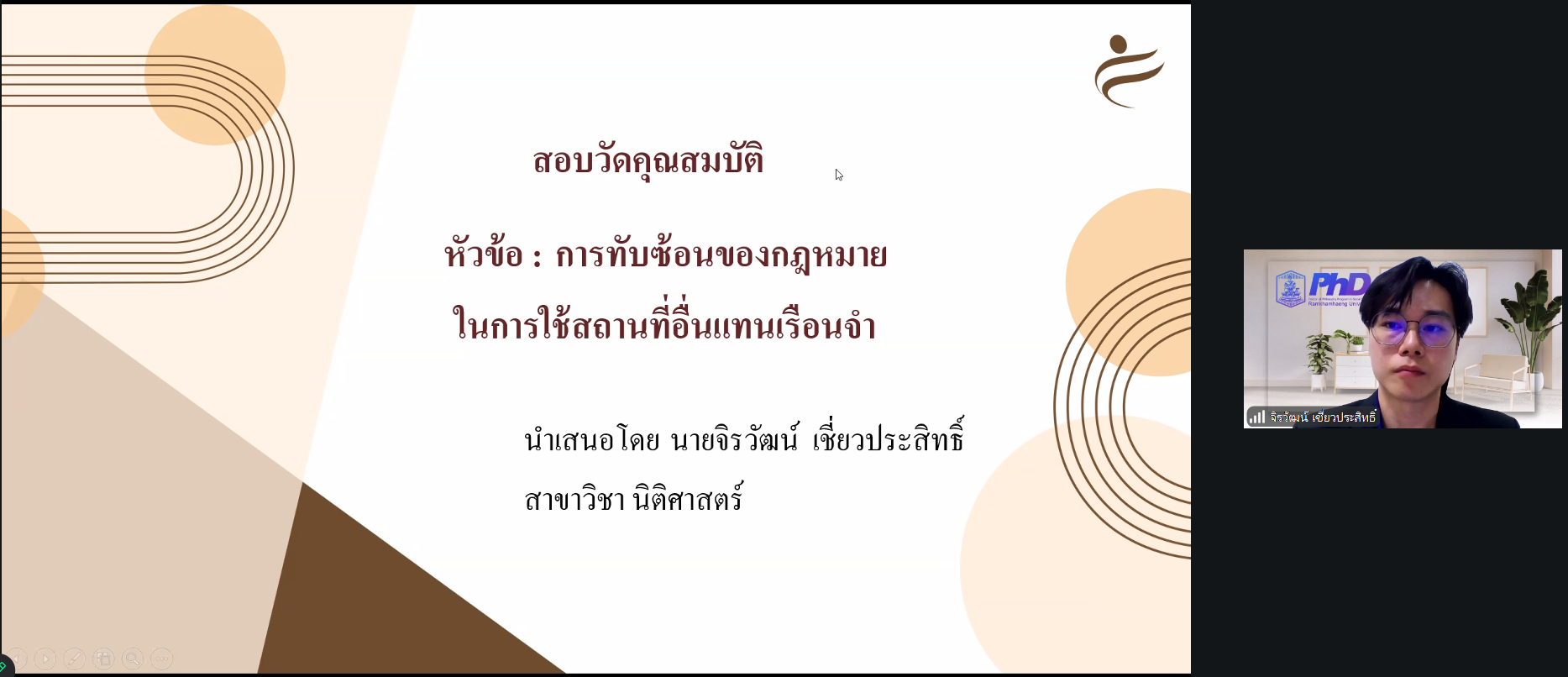 นำเสนอดุษฎีนิพนธ์ โดย นายจิรวัฒน์ เชี่ยวประสิทธิ์ สาขาวิชานิติศาสตร์