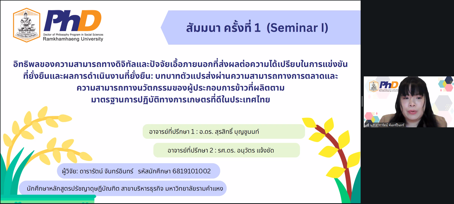 หัวข้อดุษฎีนิพนธ์: “อิทธิพลของความสามารถทางดิจิทัลและปัจจัยเอื้อภายนอกที่ส่งผลต่อความได้เปรียบในการแข่งขันที่ยั่งยืน