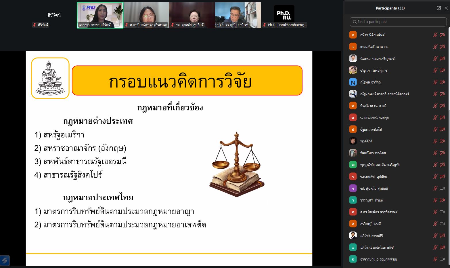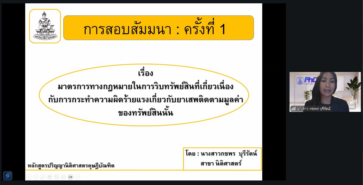 นำเสนอดุษฎีนิพนธ์ โดย นางสาวกชพร บุรีรัตน์ สาขาวิชานิติศาสตร์