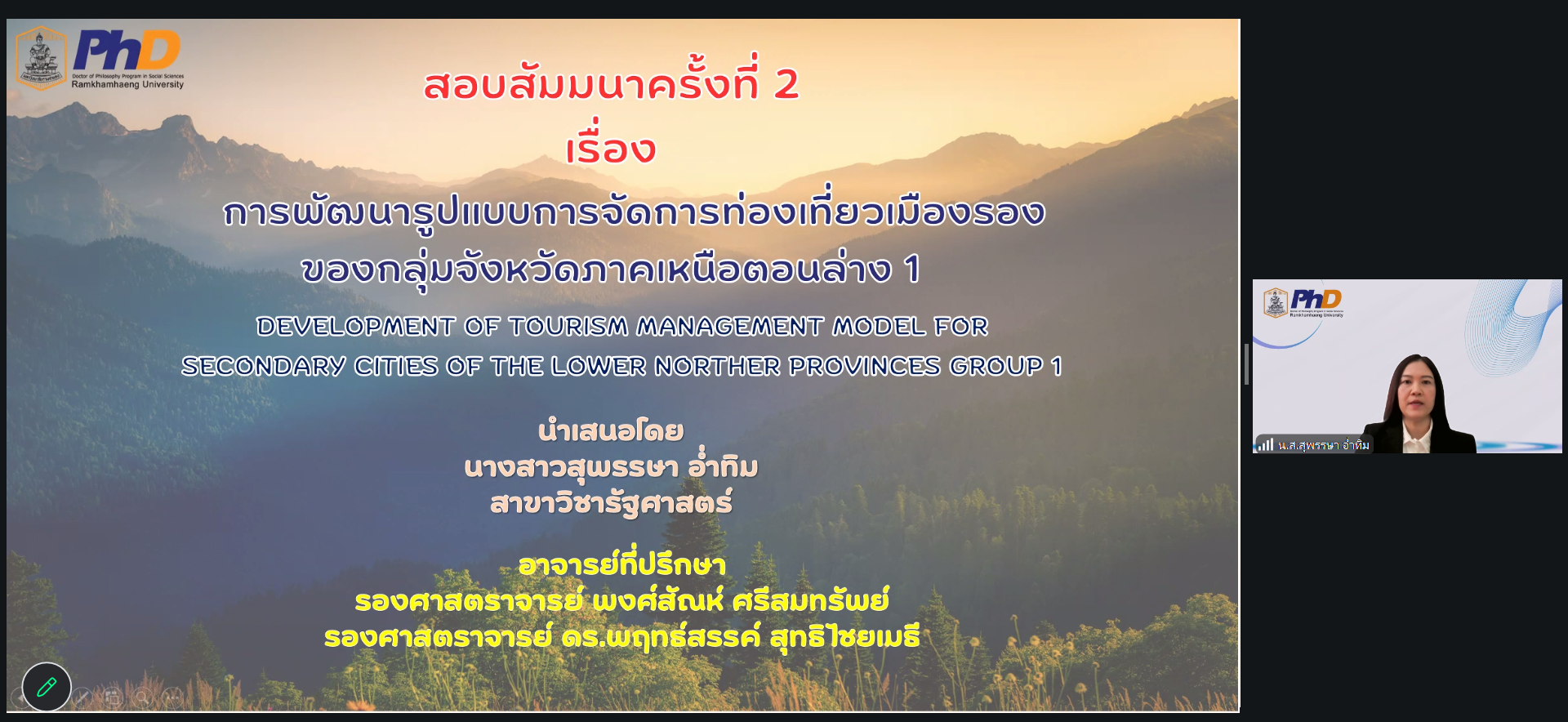 หัวข้อดุษฎีนิพนธ์: “การพัฒนารูปแบบการจัดการท่องเที่ยวเมืองรองของกลุ่มจังหวัดภาคเหนือตอนล่าง 1”