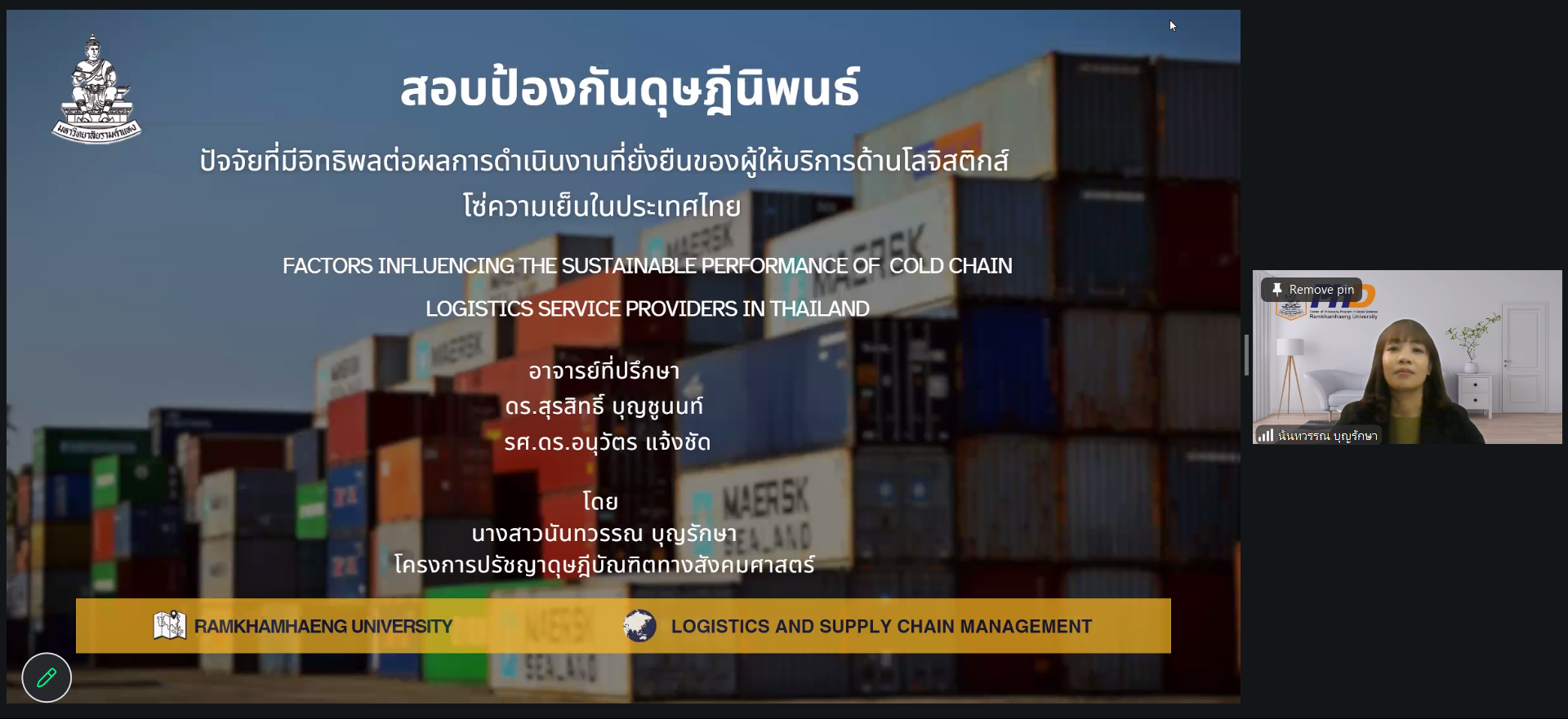 📝หัวข้อดุษฎีนิพนธ์: “ปัจจัยที่มีอิทธิพลต่อผลการดำเนินงานที่ยั่งยืนของผู้ให้บริการด้านโลจิสติกส์โซ่ความเย็นในประเทศไทย”