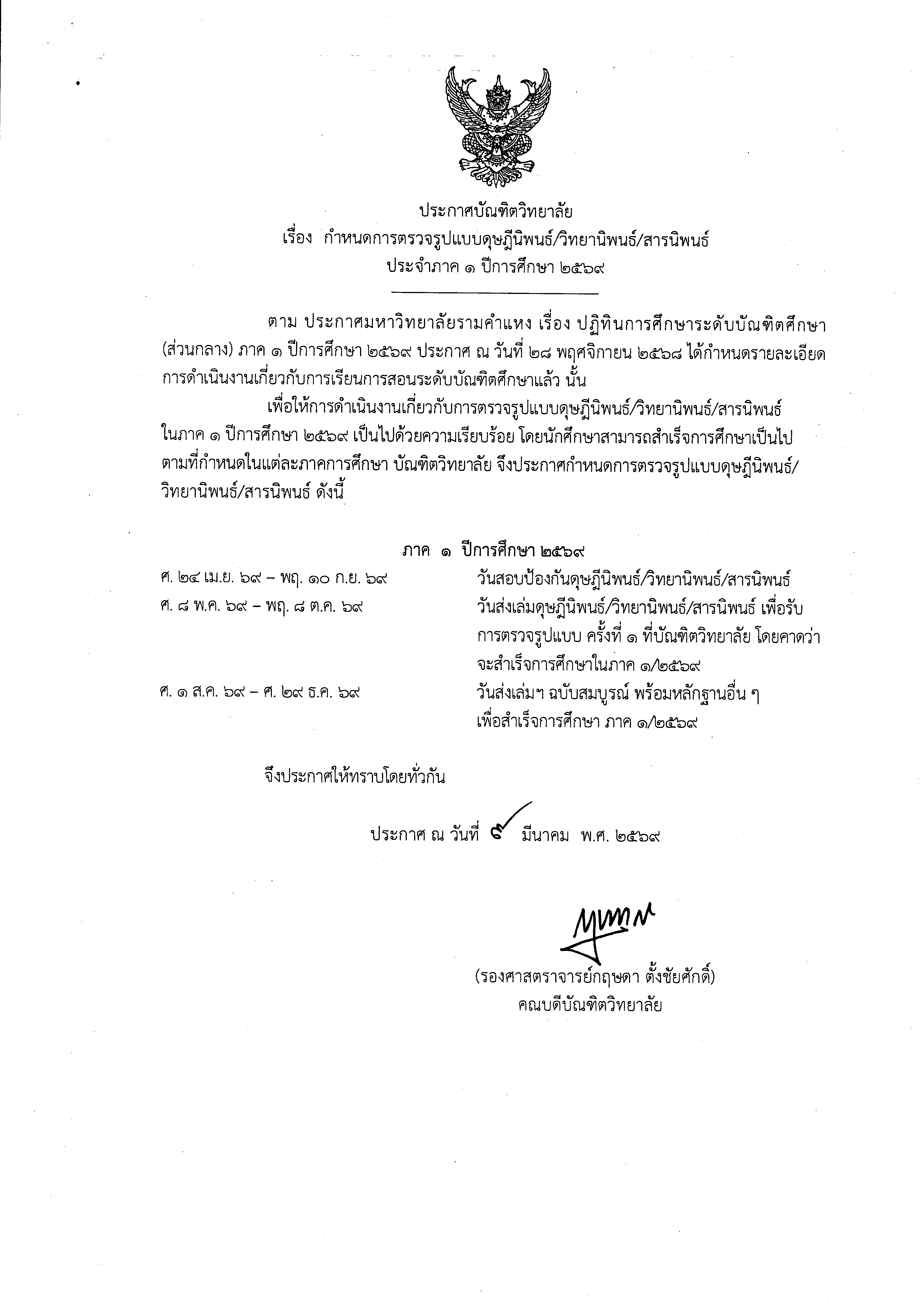 กำหนดการตรวจรูปแบบดุษฎีนิพนธ์ ประจำภาค 1 ปีการศึกษา 2569